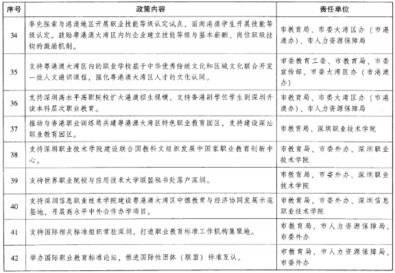 (十三)推动区域要素流动。依托深港科技创新合作区深圳园区,支持深港职业学校承担国家、省、市制造业创新中心、技术创新中心、产业创新中心等项目,推动人员、物资、科研经费等便利流动。鼓励深圳为港澳籍人员提供助学服务,支持其考取教师资格证等内地职业资格证书,并在内地就业。鼓励深圳聘请港澳能工巧匠、技能大师到职业学校任教。支持深圳高水平高职院校扩大港澳招生规模,支持香港副学位学生到深圳升读本科层次职业教育。
